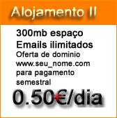 em Disco - 300 MB Contas de Email POP3 - ilimitadas Bases de dados mySQL - ilimitadas PHP | ASP | PERL | CGI |SSI | Painel de Administração (cPanel) WebMail Redireccionamento de Emails Conteudos Pré - Instalados Estatísticas diárias Assistência 24/7 |